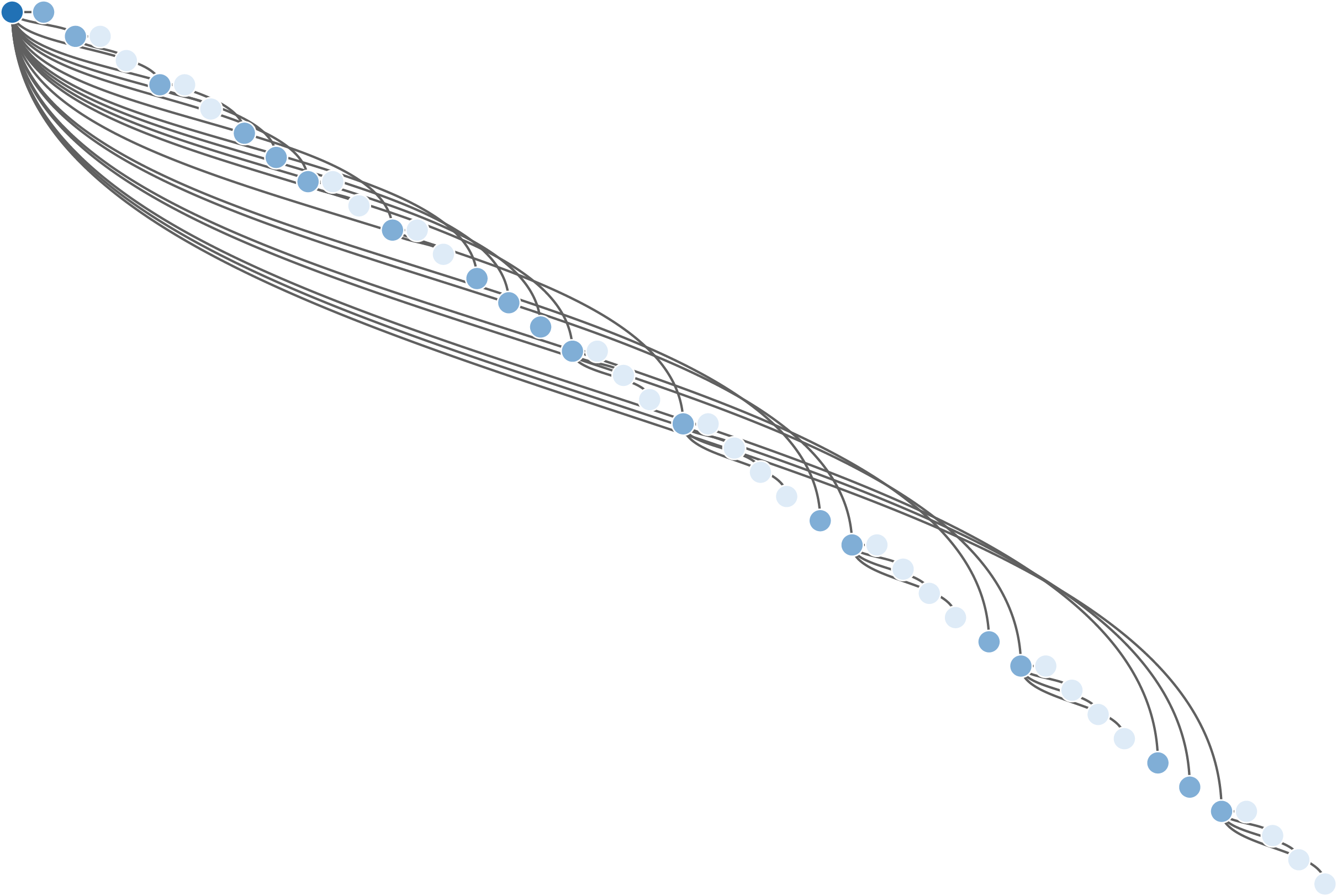 Along the x axis, the relation between root and subtree group is juxtapose. The relation among subtrees within subtree group is flatten.