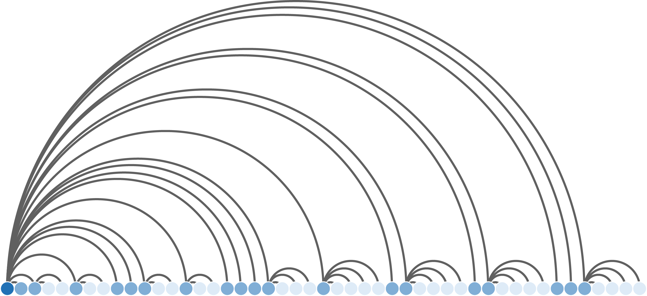 ThreadArc is designed to visualize the chronological order and hierarchical structure of the nodes. It encodes the parent-child relations with arc paths and chronological order with the node sequences.