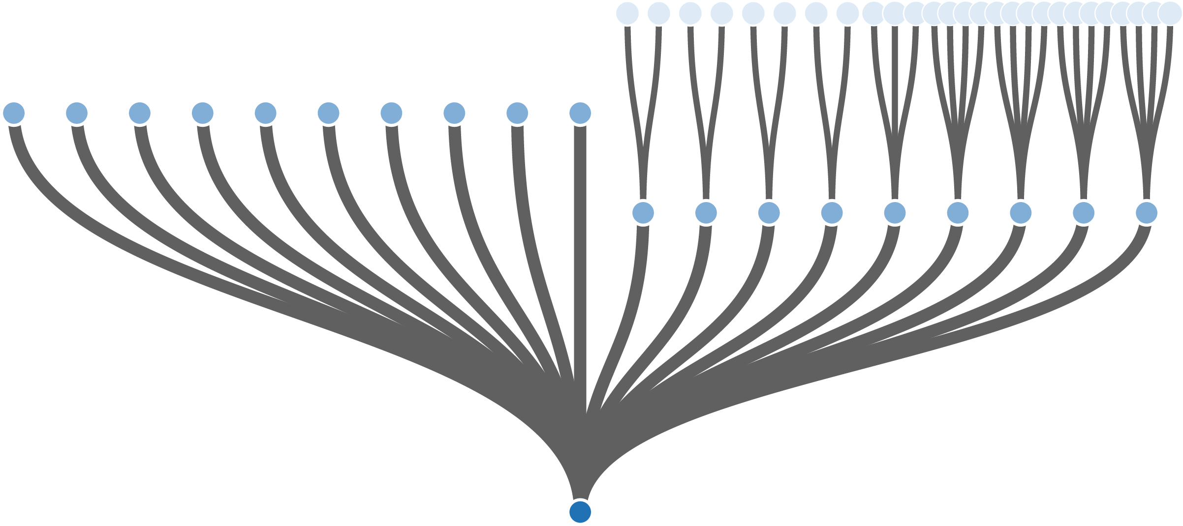 Along the x axis, the relation between root and subtree group is juxtapose. The relation among subtrees within subtree group is flatten.